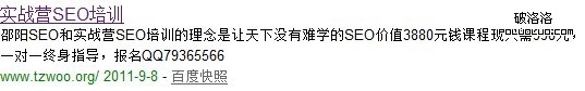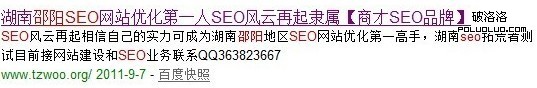 網站的標題是搜索引擎判斷你網站主題的重要途徑,你想想你修改了標題,搜索引擎需要重新去認識你,這需要時間,這就為什麼有些權重低的網站為什麼一改標題就會發現快照停止了,要等上一段才能跟上,才被搜索引擎再次識別,再次接納。這跟網站權重也有關系,如果你是一個權重高的網站,搜索引擎很相信你,快照片也會馬上跟上來。還有這跟搜索引擎本身也有關系,像谷歌反應就比較快,百度就在這方面比較的慢。還有一點比較重要的是你修改的幅度有多大,比如你是做SEO行業的,改成美容去了,那麼這相差相當之遠的話,是比較嚴重的,如果是輕微的修改也沒什麼太大的事情,接下來我就邵陽SEO這個博客修改了標題後是怎麼操作的實戰經驗給大家分享一下,先上兩張圖片