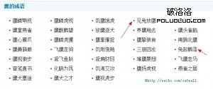 同樣,被抽出來的分組詞,本身就是一個關鍵詞,而這個關鍵詞表面上看與成語無關,其實相關性相當的強,應該說新東方的SEO在策劃這個平台時對關鍵詞的把握和用戶心理的把握還是很到位的,用戶一般搜成語或者來成語的網站,目的性比較明確,要麼是不知道這個成語意思是什麼,要找,還有一個就是想找某些方面的成語,對於第一種用戶,他搜的直接就是成語本身,對於第二種用戶,他肯定會搜什麼方面的成語,這時候這個分組的意義就非常大了。