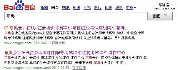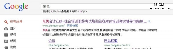 有了上面所說的品牌關鍵詞區域化後,大家應該有個初步的了解了,接下來我們需要時刻警惕著你的競爭對手會不會對你下黑手,還是用之前的例子來說明,兩家會計行業競爭巨頭,我們通過各大搜索引擎搜索他們的品牌關鍵詞來實踐查詢,這裡我們在百度、谷歌常見的搜索引擎裡面以不同區域來搜索品牌關鍵詞“東奧”為例。