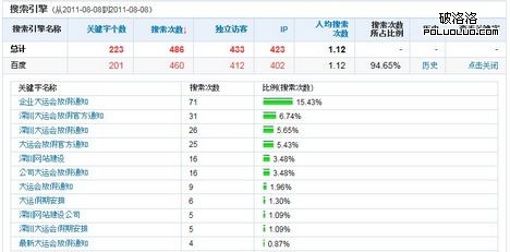 2011年8月8日晚上10點多的截圖,獨立訪客513,ip490,這個是我們沒想到的,給了我們啟示。