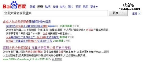 搜索企業大運會放假通知的時候,結果顯示我們是排在第一位的,搜索次數居首。