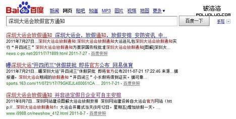 通過各種有關大運會放假的信息搜索進來的,看到的都是百度8月8日的來源。