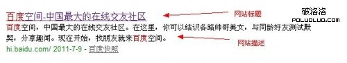 網站描述相當於對整個網站的一個概括,應當真實概括,從用戶體驗的角度考慮,做到百度快照返回的結果和網站的實際性質一致。