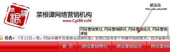 記住,一定要為圖片加ALT屬性文字,大部分網站應該會把LOGO做成鏈接,但是沒有加錨文本,那效果大不一樣。