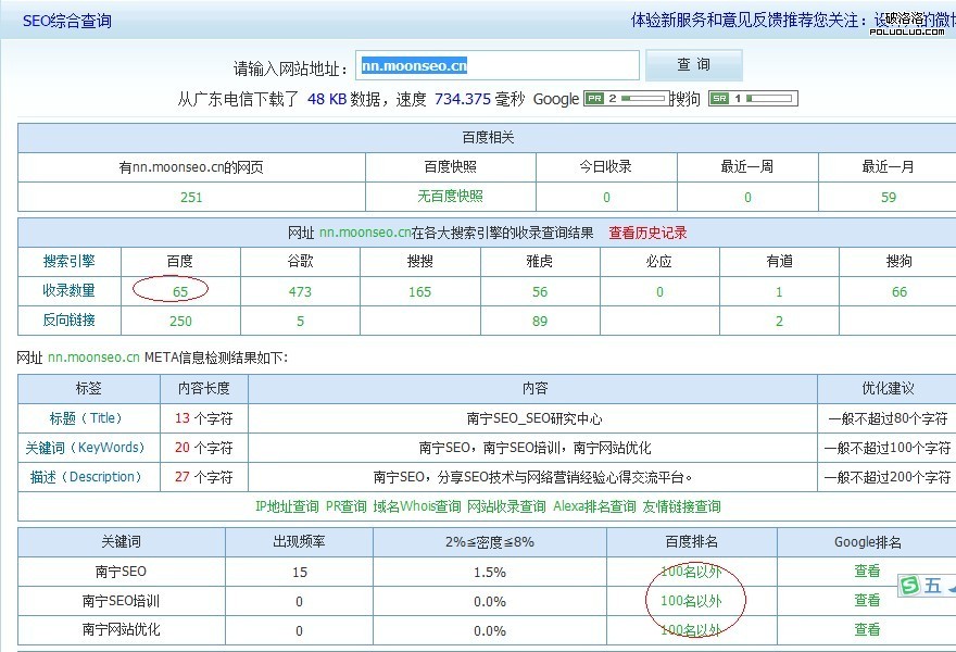 當自己一個站辛辛苦啼做起來,不知道為什麼,一夜間回到解說前,雖然沒有百度K站那麼慘 ,但是百度收錄減了一半,原來是160條,現在減少了95條收錄,原來南寧SEO排名從6月8日一直穩居第一位,從7月10日開始,掉到100名外,南寧SEO培訓從6月15日一直穩居第3名,從29日開始一直穩居第一位,到7月10日掉到了100名外,到底是什麼原因讓這個南寧SEO博客從穩居一個月左右的排名一下回到解放前呢?下面請大家慢慢聽小編細細道說。