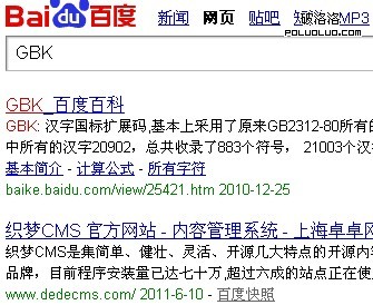 百度搜索關鍵詞GBK,織夢官方站點排名百度第二位