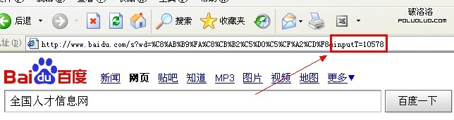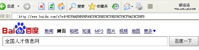 從5月20日後,細心的站長或SEOer通過搜素引擎搜索會發現,在百度搜索引擎地址欄多了一個參數(如圖):我們以搜索全國人才信息網為例。