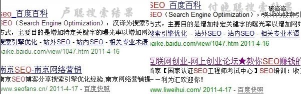 前幾天跟北海seo付曉聰交流的時候,問過他在哪兒學的seo ,他說百度seo第一位就是了。我興匆匆的去百度了下,出來的是百度百科。排在第二位是南京seo,然後曉聰遺憾的說seowhy的排名掉了,然後把搜索seo的截圖發給我看。