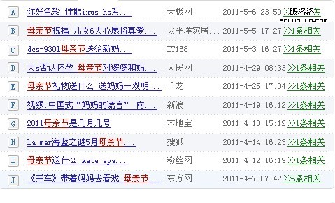A、短期目標:利用長尾關鍵詞做文章的標題,另外盡可能的在文章內容裡面出現長尾關鍵詞,為這些長尾關鍵詞適當的做好錨文本,這個完全在短期內可以完成。例如我們在母親節前後可以在網站上做一些關於母親節長尾詞,吸引用戶來網站浏覽。例如有的網站做的新聞: