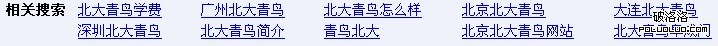 利用百度下面的相關搜索來進行數據挖掘的,比如需要做關鍵詞“北大青鳥”的關鍵詞挖掘,那麼我們只需要搜索關鍵詞“北大青鳥”,可以看到下面的相關搜索,如下圖: