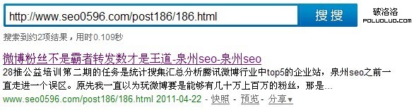 以下是在搜搜中輸入該文章地址的情況: