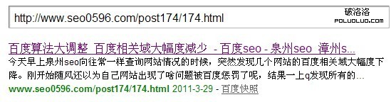 當然這樣的例子不是個例,又比如我博客中的另一篇文章(2月22號的)“百度算法大調整 百度相關域大幅度減少”。這篇文章也是由於一些原因沒有按正常的規律去發布的文章,百度剛開始也是不收錄的。那麼為什麼說是剛開始不收錄呢?因為現在這篇文章已經被百度收錄的,那麼這個也正是楊長升接下來要介紹的,就是遇上這樣的情況的解決方法。