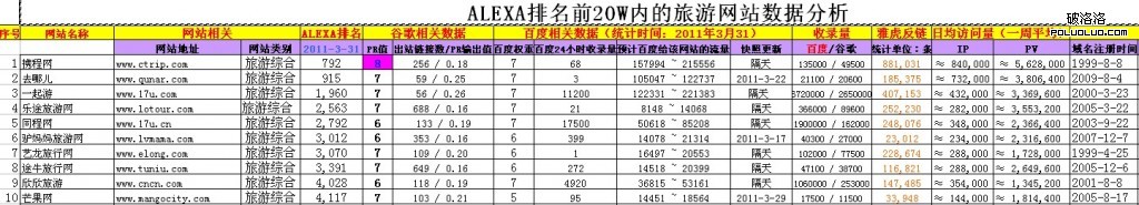 本次分析的是在ALEXA排名前20萬的專業旅游網站Top10,如下圖: