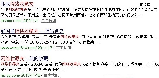2.圖中最為簡單的就是百度一下網絡收藏夾,那麼我們要怎麼判別哪一個收藏夾權重百度青睐呢?就算你一次性收集了50個收藏夾網址,你還不是想作出一個選擇,看看哪些好。有些朋友會說,快照新的,排名好的,收錄好的,凝凝飛兒說下,沒錯,都沒錯,不過我有個疑問,要是這些站快照都是隔天的,收錄都是槓槓的,排名無非就是都在首頁,你肯定會說排名第一的。其實自己不這麼看,我自己觀察的方法就是隔時間查詢收錄,很簡單的,我隨意查看,時間范圍設定為一月,那麼leshou的收錄為“百度一下,找到相關網頁約136,000篇,用時0.047秒”;wang1314的是“百度一下,找到相關網頁約152,000篇,用時0.049秒”,那麼可以簡單的看到百度對這兩種網站的一種簡單的對比,網站質量也隨之了然。至於這種方法,我有個疑問,平時都說新浪博客一枝獨秀,我想問下,大家是從哪裡看的,當初我自己就是“被”人說sina博客好,所以才用的,也沒有想過為什麼,然後當我用這個方法試過了之後才發現的確這樣,直接看看sina和163,新浪的“百度一下,找到相關網頁約17,500,000篇,用時0.075秒”,163的“百度一下,找到相關網頁約15,700,000篇,用時0.055秒”,一些簡單的數據對比而來,我自己還是喜歡用sina多一點,再加上微博的原因,你懂的。(以上數據都來自20110109號)