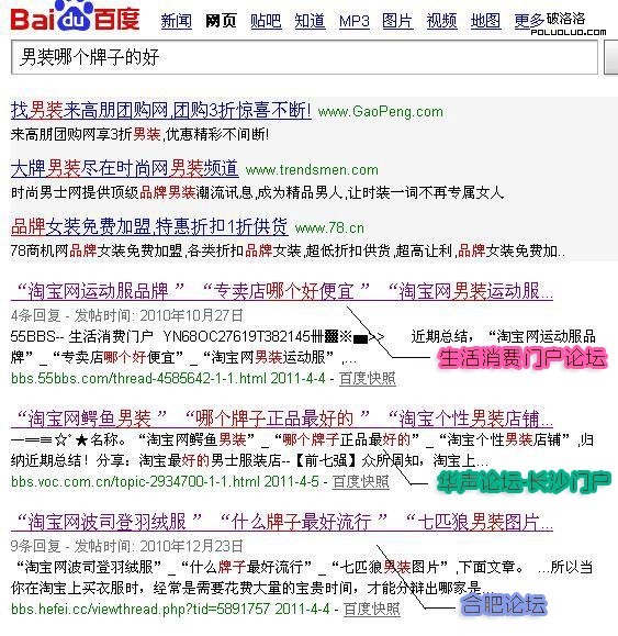 本來是經營一個很小的淘寶客網站的我,每天會關注部分關鍵詞的變化。這幾天突然之間發現平時關注的關鍵詞排名出現了很大的變動,其中一個很明顯的地方就是給了地方論壇網站很高的權重,即使匹配度不高的情況下仍然可以得到很好的排名: