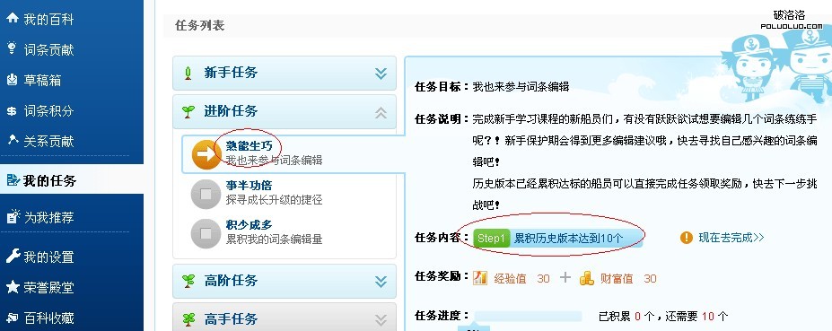 從第一個任務可以知道我們如果想升級從任務的角度來說就需要對百科進行編輯,甚至以後的創建,針對編輯和創建小艾說下自己的幾個心得,如果您不能創建,那麼編輯也是有一定的技巧,結合百度給的知識規則,我們可以對以下幾點做重點編輯,“標點符號,錯別字,鏈接,圖片,圖庫,欄目列表”如果您實際操作,那麼分類和編輯圖片通過率會更高,在實際的升級過程中,建議把所有的方面都去嘗試,只有這樣我們才會積累創建詞條的經驗。到進階這一步您的百科已經二級了。想突破三級就要繼續去做任務。