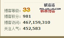 雖然我們無法確切的看出博客創建時間,但是我們可以從第一篇文章看出大約創建時間吧,我們可以看一下韓寒的博客是06年創建的,而這個博客是2010年創建的,在創建上差了兩年,而在其他方面呢?