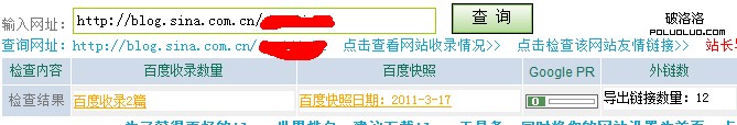 很多人之前只靠復制粘貼來做博客,然後其中添加幾個錨鏈接,每天更新一兩篇就可以了。很多人都忽略了,其實博客也有權重的。博客的等級、來訪率、好友都是博客權重的體現。個人覺得,如果博客做好了,和小站的權重不相上下。舉例說明,大家都知道韓寒、老徐等博客,他們的博客基本都是秒收的,快照也很新。我們來對比一下一個普通博客和韓寒博客的區別: