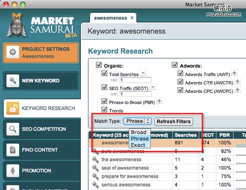 這個工具相信很多人都知道,也是個人非常喜歡用的SEO工具。Market Samurai主要是用來進行關鍵詞查詢,同時還有很多附加的SEO功能,包括列出關鍵詞排名靠前的網站,排名跟蹤,尋找推廣產品,尋找文章,發布文章,根據你的關鍵詞尋找一些web2,博客及論壇資源,等等。另外這個工具是Adobe AIR的,需要安裝插件才能運行!