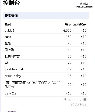 本人只是按自己的一些小經驗,希望大家能更好的理解詞干技術和分詞技術的區別,在以後針對性優化時有點幫助。相信seoer都用過google管理員工具的,以本人的博客為例,看下圖: