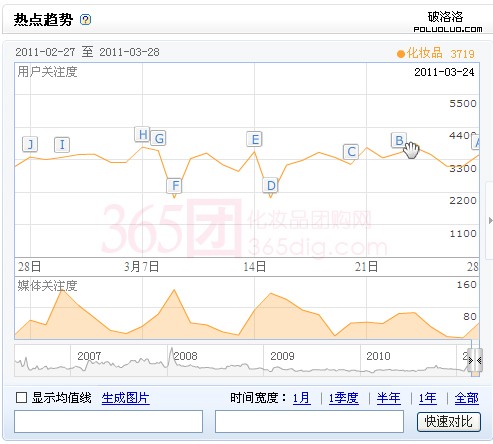 所以在定位核心關鍵詞時,定位不可以太高,競爭激烈的關鍵詞語優化起來難度非常大,不但投入大量的精力與時間去管理,而且最終的效果也不容易穩定,所以建議我們選擇化妝品人們容易忽視而且檢索量還相當大的詞語,這些詞語可以通過百度指數以及百度關鍵詞推薦工具查詢,另外新出現的熱門詞語更是我們優化的主要目標。