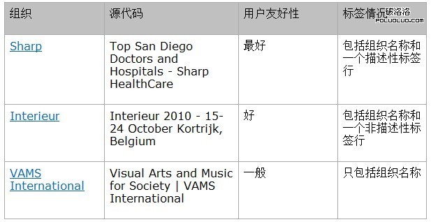 理想情況下,一個好的title元素包括組織名稱還有一個描述性的標簽行。讓我們看看一些提交網站的實例: