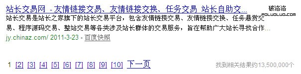 1、收錄chinaz.com域名的頁面總共13500000個;