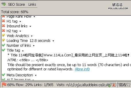 Seo的分數代表了當前浏覽的網頁優化的結果,最好的搜索引擎優化分數是100分