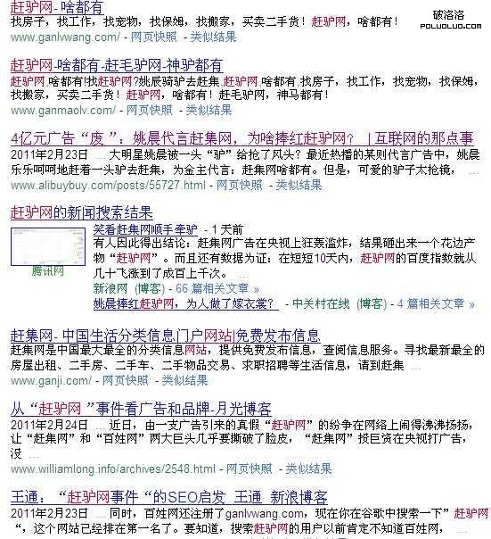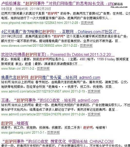 “趕驢網”事件從發生到現在將近一個月的時間,那麼有哪些網站占據了百度前十名呢,讓我們來看看。