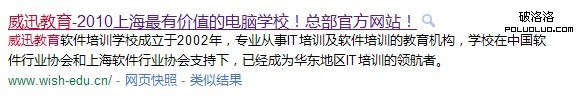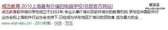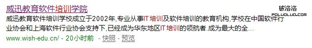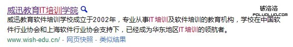 在搜索關鍵字“威迅教育”的時候,結果中出現的是現在網站的title,而輸入“IT培訓”的時候,結果卻是出現以前網站的標題。