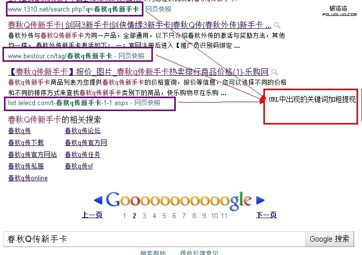 目前搜索引擎的結果頁面中也都是顯示URL地址的,就像標題和網站內容摘要一樣,如果搜索結果URL中包含了某個關鍵詞,那麼他會在搜索結果中以粗體顯示,這樣可以更好的使用戶了解到所要到達的頁面是一個什麼樣的頁面,是否自己所需要的(如圖1)。