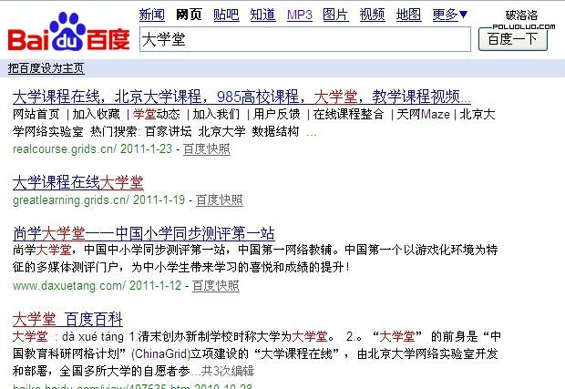1、基於理解:傻瓜式匹配,小於等於3個中文字符百度是不進行切詞的,比如搜索“大學堂”。