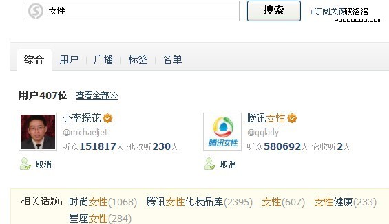 什麼是微博相關話題呢?比如你在微博中搜索女性話題,就可以看到女性相關話題:時尚女性、騰訊女性化妝品庫、女性、女性健康、星座女性。那麼這些都是女性話題的相關話題,那麼我們怎麼刷這個相關話題呢?比如我們要在大家搜索“女性”話題的時候出現“女性健康”這個相關話題,那麼我們只需要在發布女性健康話題的時候,把女性健康用##括起來。如#女性健康#,作用你懂的,同樣微博相關話題也不是一個兩個就能夠出現的,還是要達到一個度,一個標准。