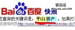 接下來他問我,為什麼他在搜索平山房產找到的自己的網頁的快照中,圖中很多含有平山、房產的句子中平山房產都沒被拆分。可能我直接復制他的話各位朋友很難理解,我解釋下,凡看過百度快照頁面的都清楚,如果當前百度快照頁面的內容中出現你搜索時的關鍵詞,有時可能只是關鍵詞的一部分,都會出現底色(黃色或其他色),所以他的意思是為什麼他搜索平山房產看自己網站的快照時上圖中的平山與房產二詞為什麼沒有出現底色。