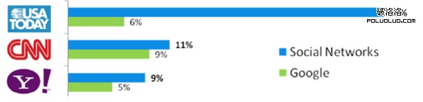 上圖是幾個新聞類的網站的流量數據對比。根據國外Compete的研究數據,在某些網站上,SMO(社會化媒體優化)的流量已經超過了SEO的流量。這一趨勢已經在國外開始發生,相信不久的將來,在國內也會呈現極大的優勢體現。