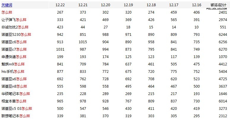 另外,夢芭莎的SEO策略還有一個重要的組成部分,就是對於“產品+好不好”,“產品+怎麼樣”這樣的詞綴做了關鍵詞策略規劃,這種類型的關鍵字搜索量大、用戶意向比較明確,而且由於是長關鍵詞,競爭通常也不激烈,這種類型的關鍵詞是長尾策略的最佳載體。下圖是通過搜索量檢索工具查詢的該類關鍵字的搜索量圖: