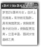 確立了關鍵字策略,下一步就是考慮要如何將這些策略貫徹到網站結構及頁面要素上。夢芭莎在這方面的操作倒是中規中矩,基本上就是個性化地設置頁面的META元素,另外為了凸顯頁面的核心關鍵字,在頁面的邊欄上增加了一個文本塊。如在“夢芭莎文胸-按尺碼大小查看-B罩杯文胸”這個類目頁面,夢芭莎的SEO人員就在頁面邊欄增加了這樣的一個文本塊,跟其他網站的文本塊不同的是,為了讓這些文字更具有可讀性,這些文本不是由程序生成的,而應該是由編輯人員手工撰寫的,這個工作量很巨大,而且還要挖空心思把每個板塊的內容都寫得不一致,難為這個哥們了,不容易啊:)