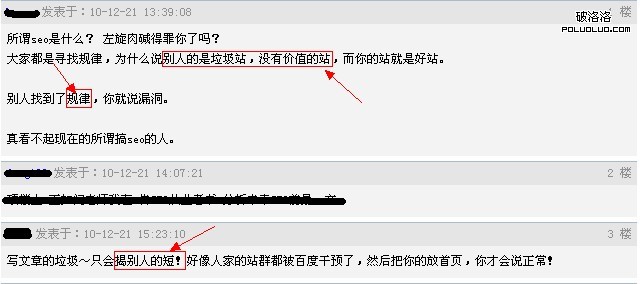 三、站長們對筆者的話:再一次回到主題還是說這些都是競爭者、或許說下面的這些評論者就是“左旋哥”。首先大家看一張最近筆者寫的《針對左旋站群 我們看到了什麼? 》:
