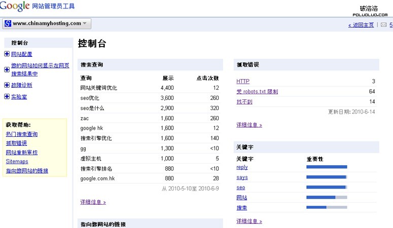 Google網管工具是一個非常好用、非常強大的工具,而且免費,強烈建議所有站長注冊。微軟必應、雅虎也都有類似工具,不過提供的數據與Google網管工具相比過於簡單。百度目前也在內測網管工具。