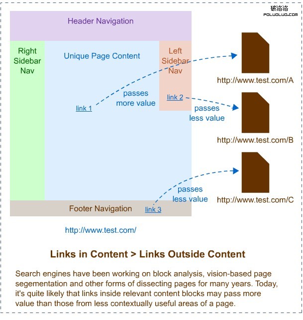 #5- 那些在內部的原創性內容中的鏈接的權重要高於頁腳、邊欄和導航中的鏈接