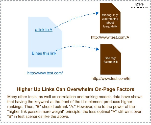 當我們在控制後的環境進行實驗測試的時候,我們發現先出現的鏈接的權重要高於後出現的鏈接。這個准則可以在Google專利程序- 基於用戶行為或特征數據的權重系統 中得到證實,這個專利中詳細說明了眾多用來進行鏈接權重衡量和傳遞的因素。