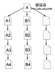 如圖2-20所示,蜘蛛跟蹤鏈接,從A頁面爬行到A1,A2,A3,A4,到A4頁面後,已經沒有其他鏈接可以跟蹤就返回A頁面,順著頁面上的另一個鏈接,爬行到B1,B2,B3,B4。在深度優先策略中,蜘蛛一直爬到無法再向前,才返回爬另一條線。