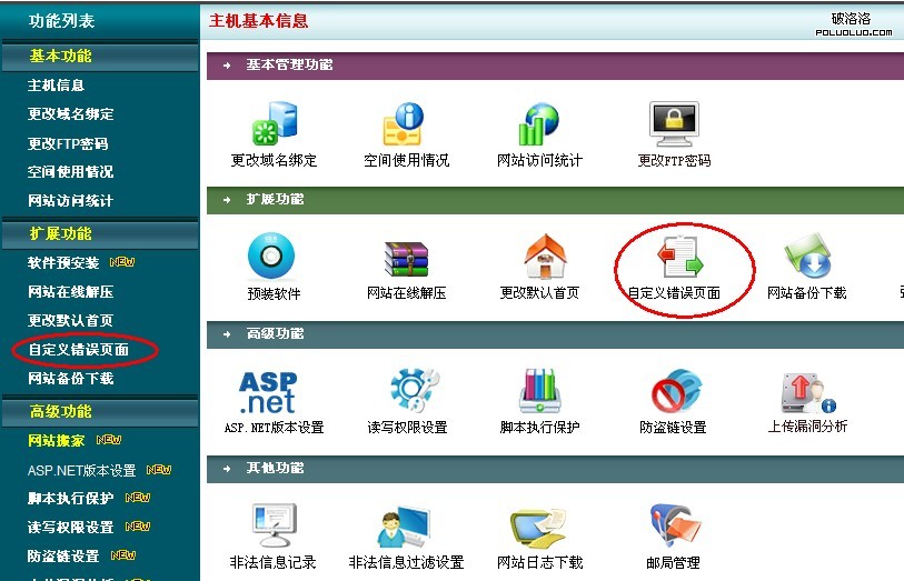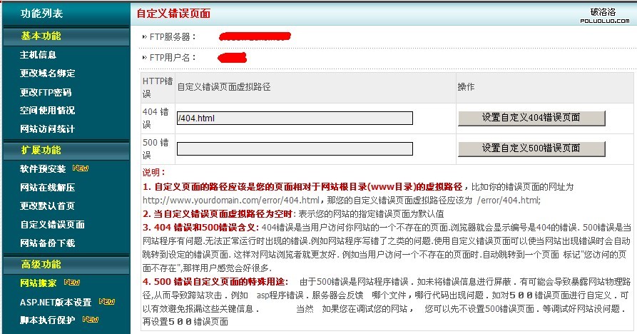 1)、點擊空間控制面板上的“自定義錯誤頁面”,就能看到一個“自定義錯誤頁面”的面板(圖一);