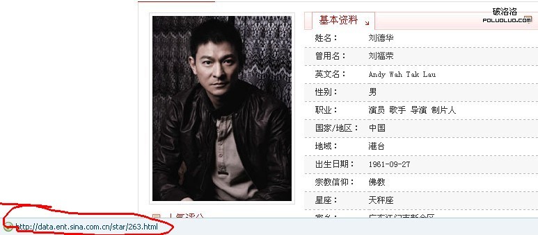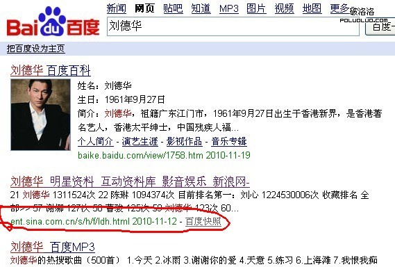 上圖是在百度搜索劉德華點擊進入新浪的頁面,發現沒有,鏈接與百度排名的鏈接不一樣?這個就是秘密!