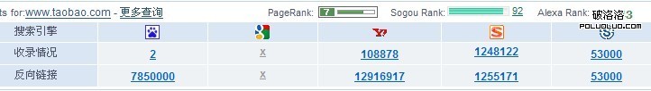 淘寶的PR值: