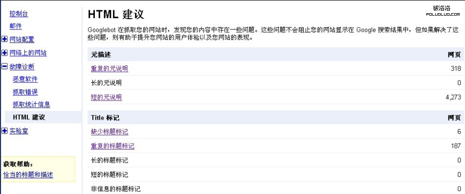 看看這個錯誤是很多的,大中型的網站,在經歷了網站代碼調整或者UED的修改後,網站肯定會出現錯誤的代碼,如何更好的解決?這裡有2個辦法,一個 是google管理員工具的html建議,還有一個就是日志的分析錯誤的狀態碼。(日志篇分析,下次放出)這裡的錯誤沒啥講的,看著錯誤,一條一條的改 吧。