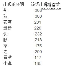 總結:該站域名注冊時間是2年前,我們看站點本身並沒有太特殊的操作,現在SEO競爭越來越激烈,這個案例就是在激烈競爭中的勝出者,這個站點我們最值得學習的是他的title部分,設置的很合理,比如標題中含有其他小說網名稱,而且小說首頁和小說文章頁的“其他小說網名稱”部分是不同的,想必是有參考而做出的結論,本次分析用到了一個分詞工具SCWS:http://www.ftphp.com/scws/demo/pscws23/demo.php ,該工具可以在幫助大家分析詞頻,你可以把你擁有的關鍵詞庫導入,看一看用戶的搜索需求,你分析的越多,你的心裡就會越有數,每個行業都有無窮的資源等我們挖掘,我希望能把這篇文章寫成一個系列,從關鍵詞表入手,分析更多的網站。感謝大家的閱讀,不足的地方還請大家指出來!