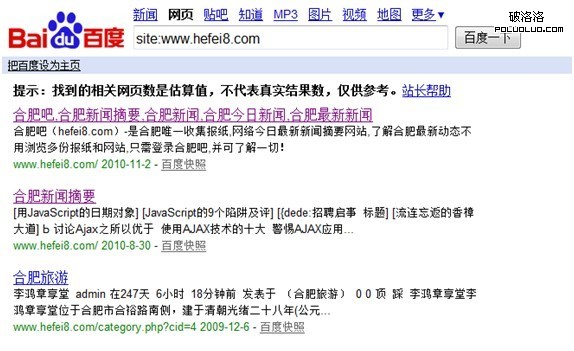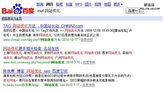 site指令很容易理解,是檢查網站被搜索友情抓取的頁面,很多做優化的人非常重視這個site結果,在前段時間百度公布的搜索引擎優化指南中說到baidu中的site結果僅供參考,非准確的結果。經常用site的人也會發現,你往收錄也的後面點擊的時候,會發現收錄總數在不斷增加會減少。所以此條指令雖然常用,但是不能作為唯一標准。