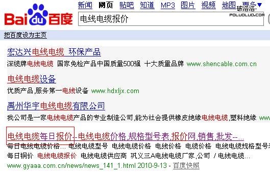 8月中旬做好了一個網站電線電纜廠,利用一個月的時間將”電線電纜價格”等幾個關健字排名做到了BAIDU第一位。筆者詳細講解一下整個過程,以供大家批評指導。