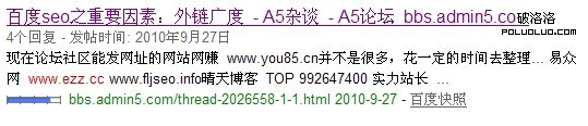 這個是A5論壇裡的別人發過的帖子,我只做了回復,查詢外鏈的時候,就顯示了,這個說明什麼,大家也是知道的哦!